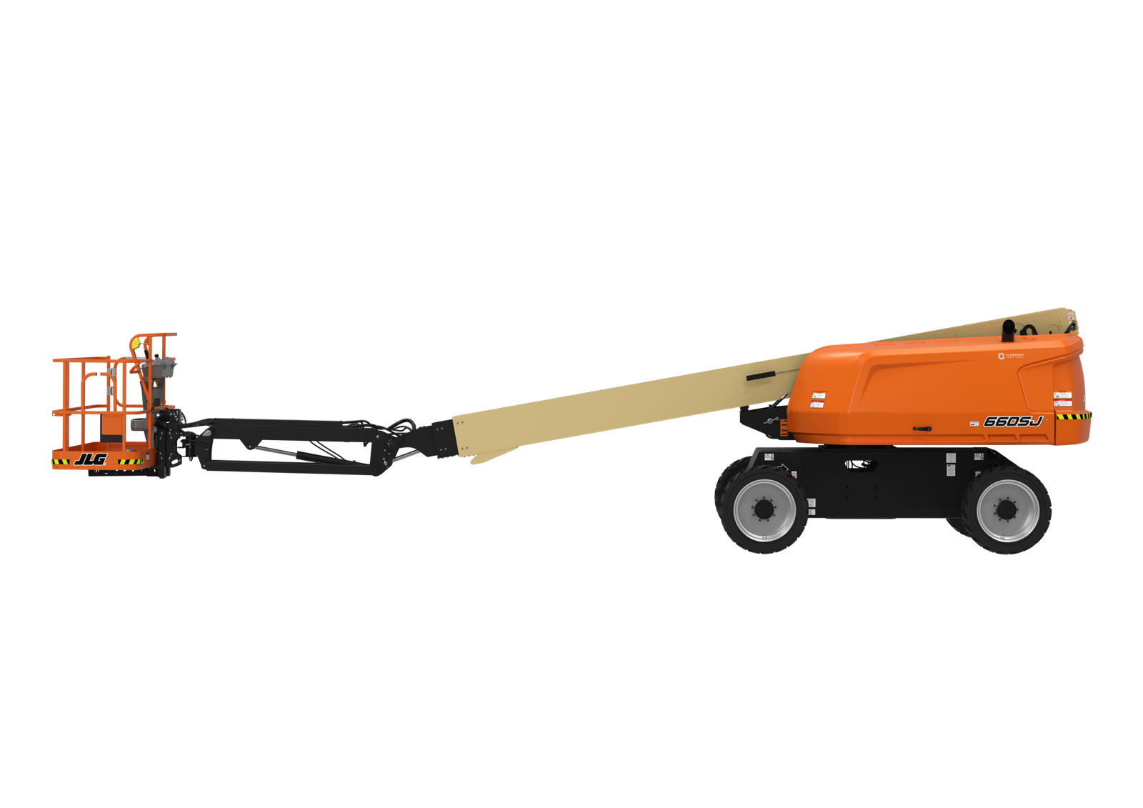 O JLG 660SJ também inclui um LED Motion/Sinalizador âmbar padrão com hardware de conectividade ClearSky Smart Fleet.